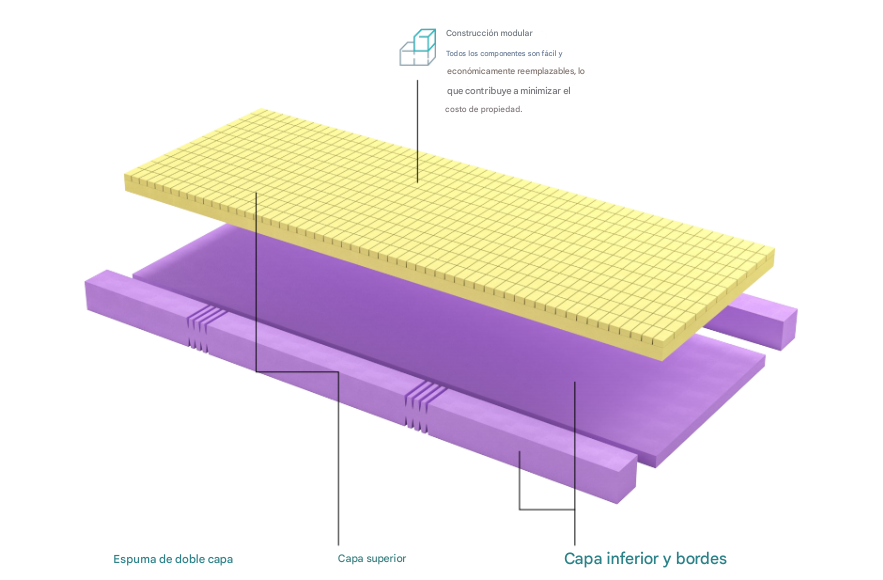 Espuma de alta densidad de 35 kg/m³, que proporciona soporte adicional en los bordes y mejora la estabilidad de los mismos durante la entrada y salida del paciente